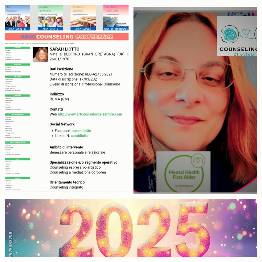 So anche che non basta capire e chiedersi “ma perché proprio a me?” Bisogna ascoltarsi, sentire. Ecco che per esempio divento: Sarah, Liotto, ArtCounselor, del Sentire. Aiuto le persone oggi e lo so fare perché so come aiutare me stessa, non solo perché ho capito determinate cose, ma anche perché mi ascolto, nel corpo, oltre a formarmi e ad aggiornarmi.
